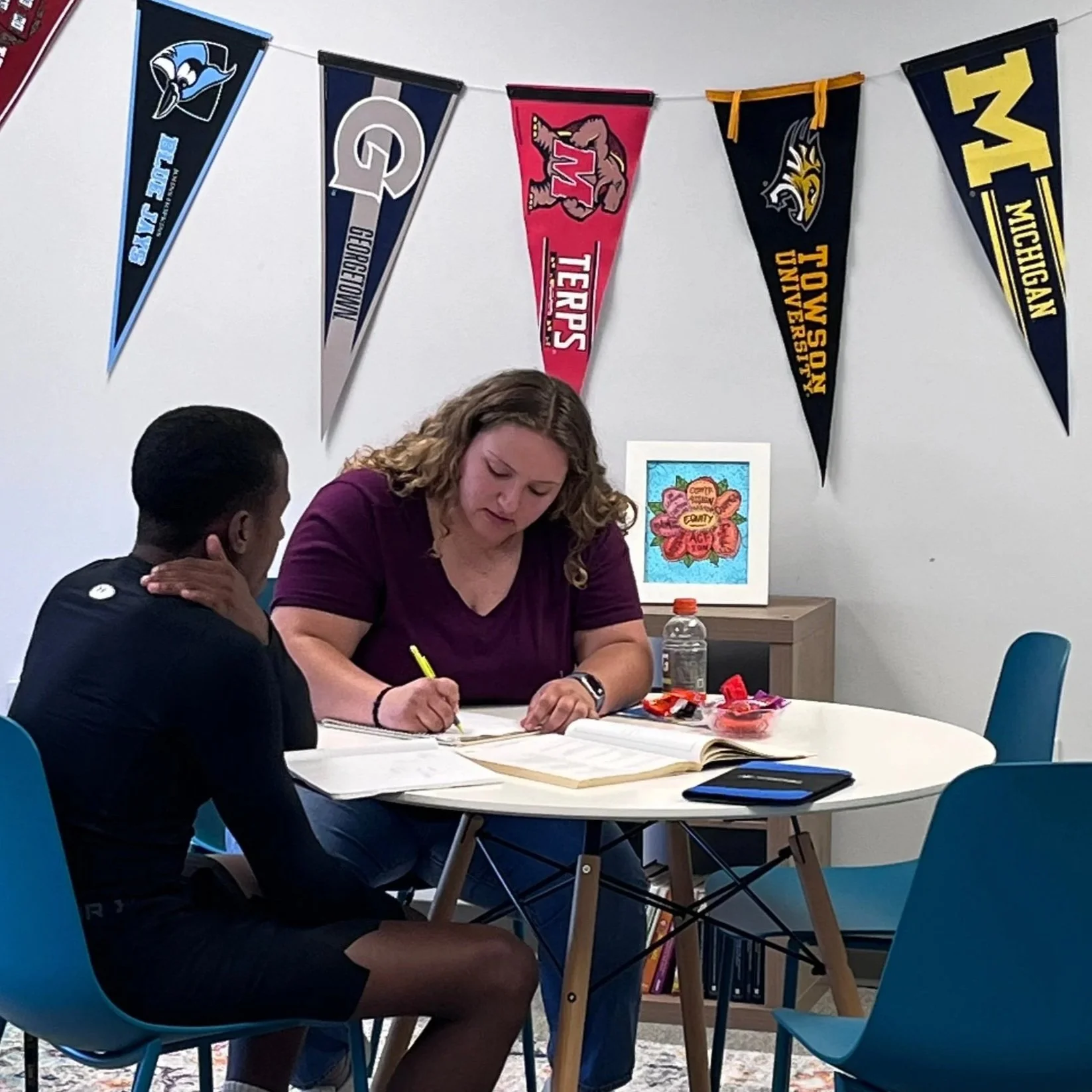 Academic tutoring helps our youth strengthen subject comprehension and build confidence. We do this 1:1 and in small groups in a dedicated educational space at our Talbot Mentors office. Youth in grades 6th – 12th join us on Tuesdays and Thursdays from 2:30 PM – 5:30 PM. We provide tutoring in partnership with Washington College to help students in Math, English, and Social Studies.